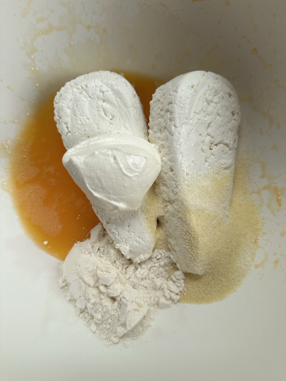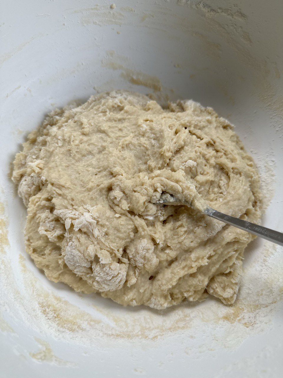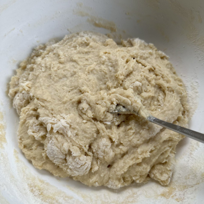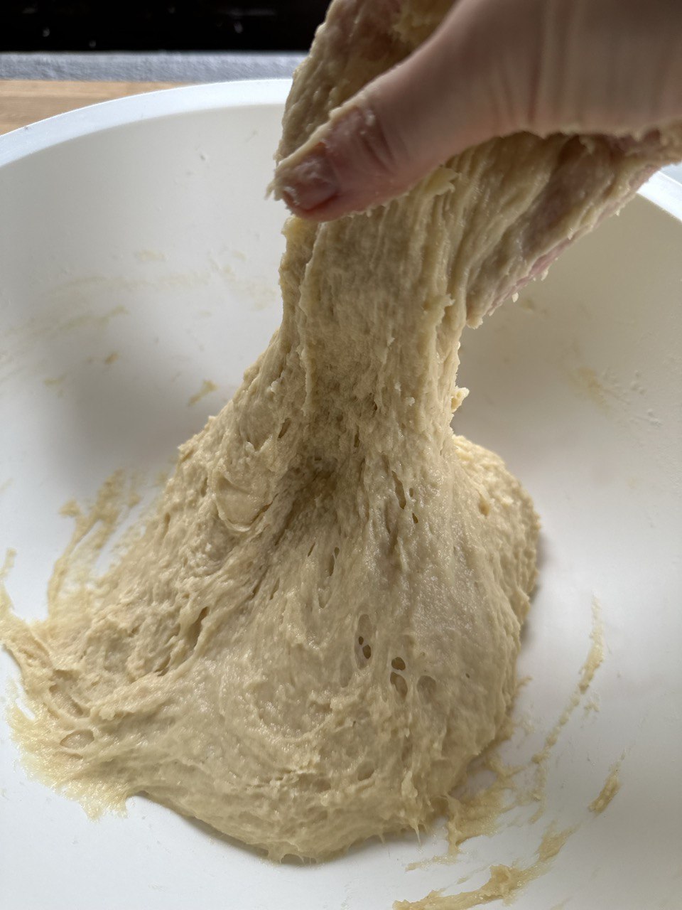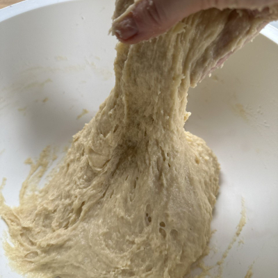 После вымешивания тесто мягкое, хорошо отстает от рук и поверхности.