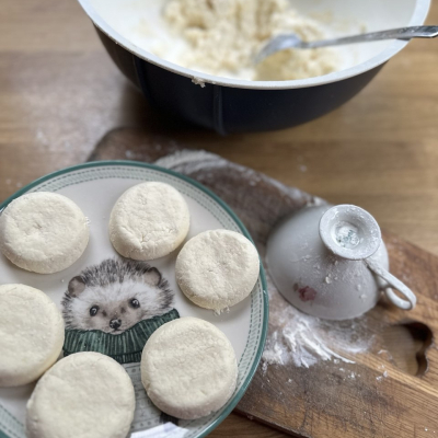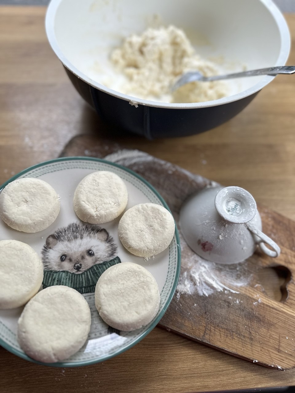 Тесто обмять и поделить на 16 равных частей, я использую весы (приблизительно 66 г). После расстойки с тестом работать комфортно, оно хорошо отстает от рук, так как в составе масло.