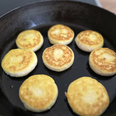 Однородные, не сухие, сливочные сырники. Получаются мягкими и вкусными — как горячие так и холодные.