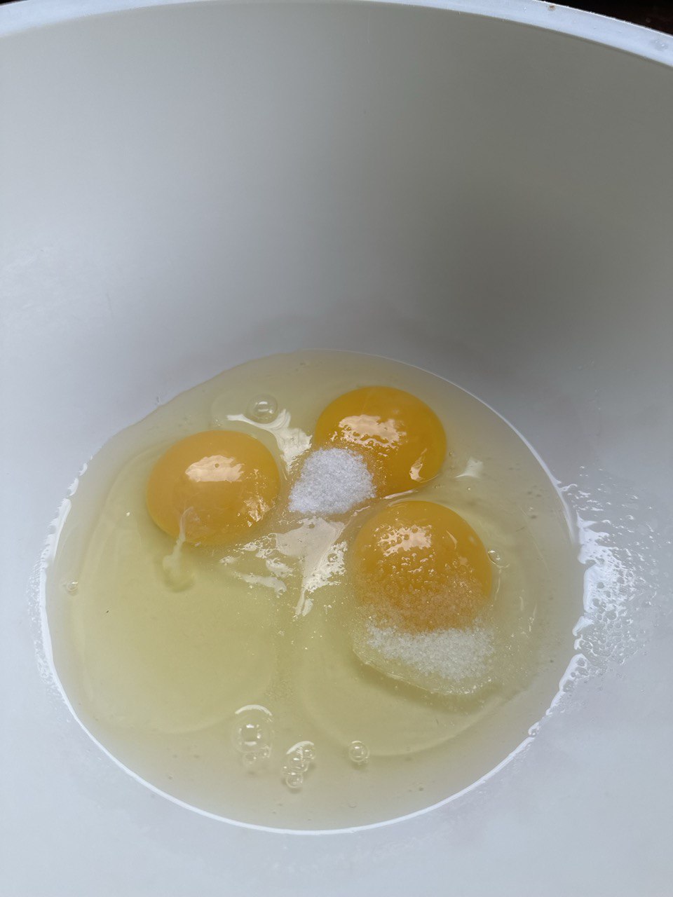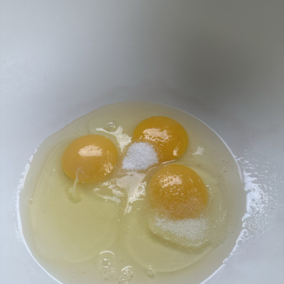Вбить яйцо, добавить сахар, ванильный сахар, соль.