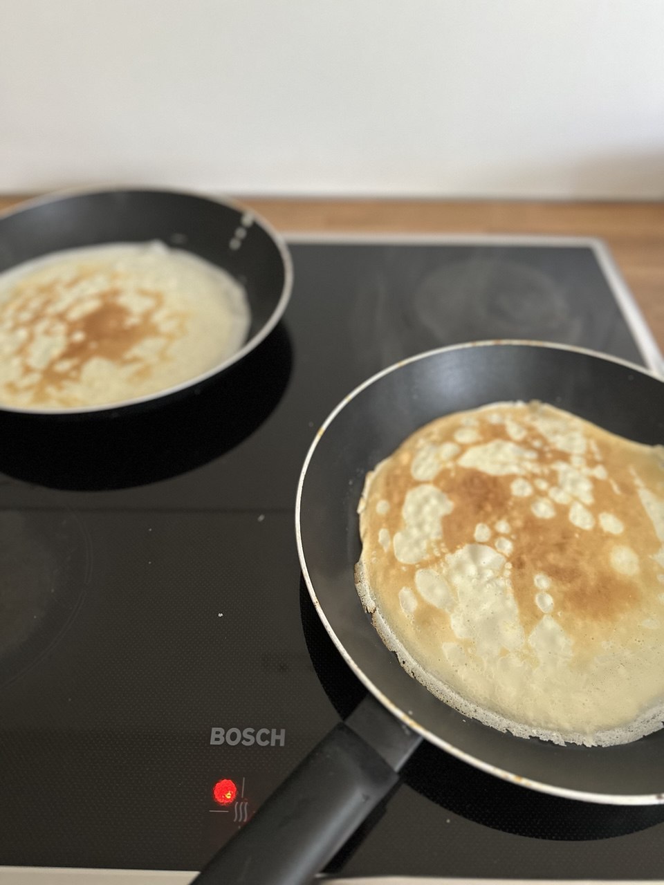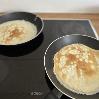 Сковородки (блиницы) смазывать каждый раз бумажной салфеткой (или силиконовой кисточкой), смоченной в подсолнечном масле. Тесто периодически перемешивайте, чтобы мука не оседала на дно.