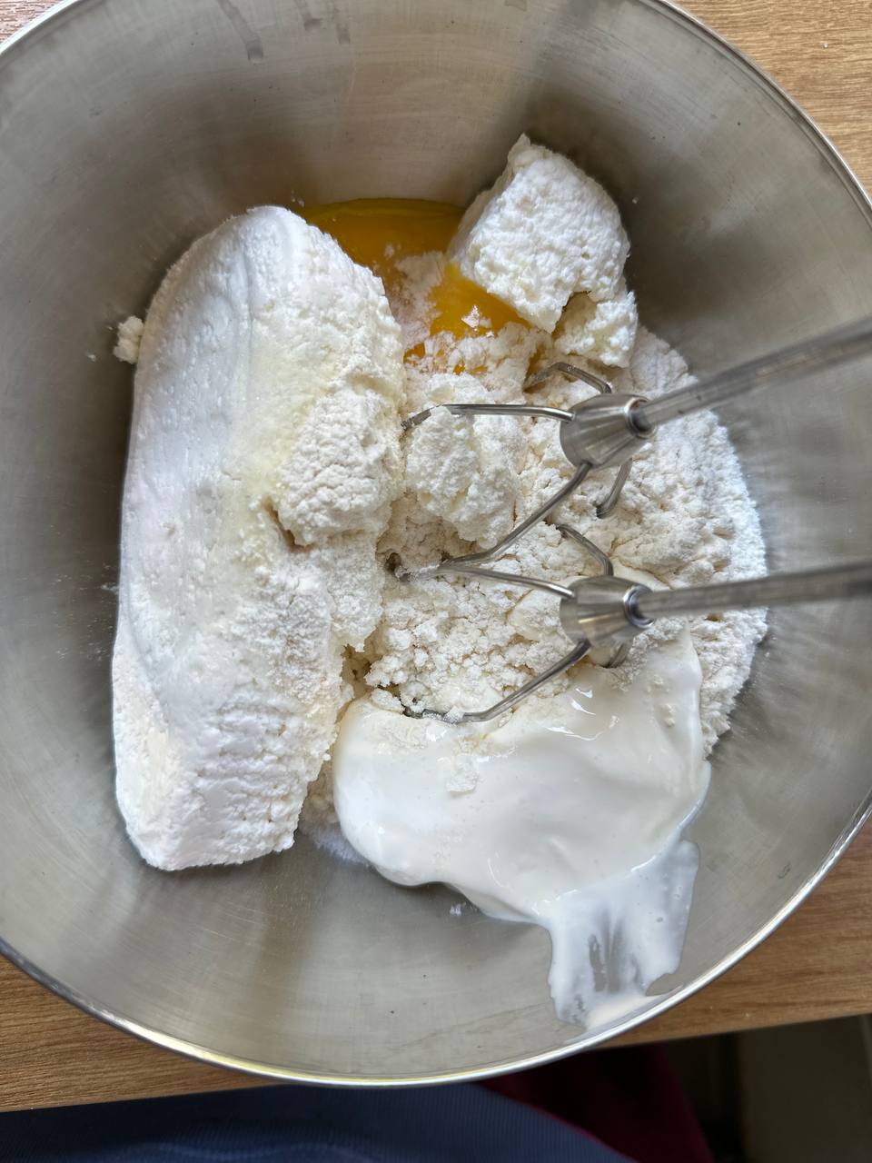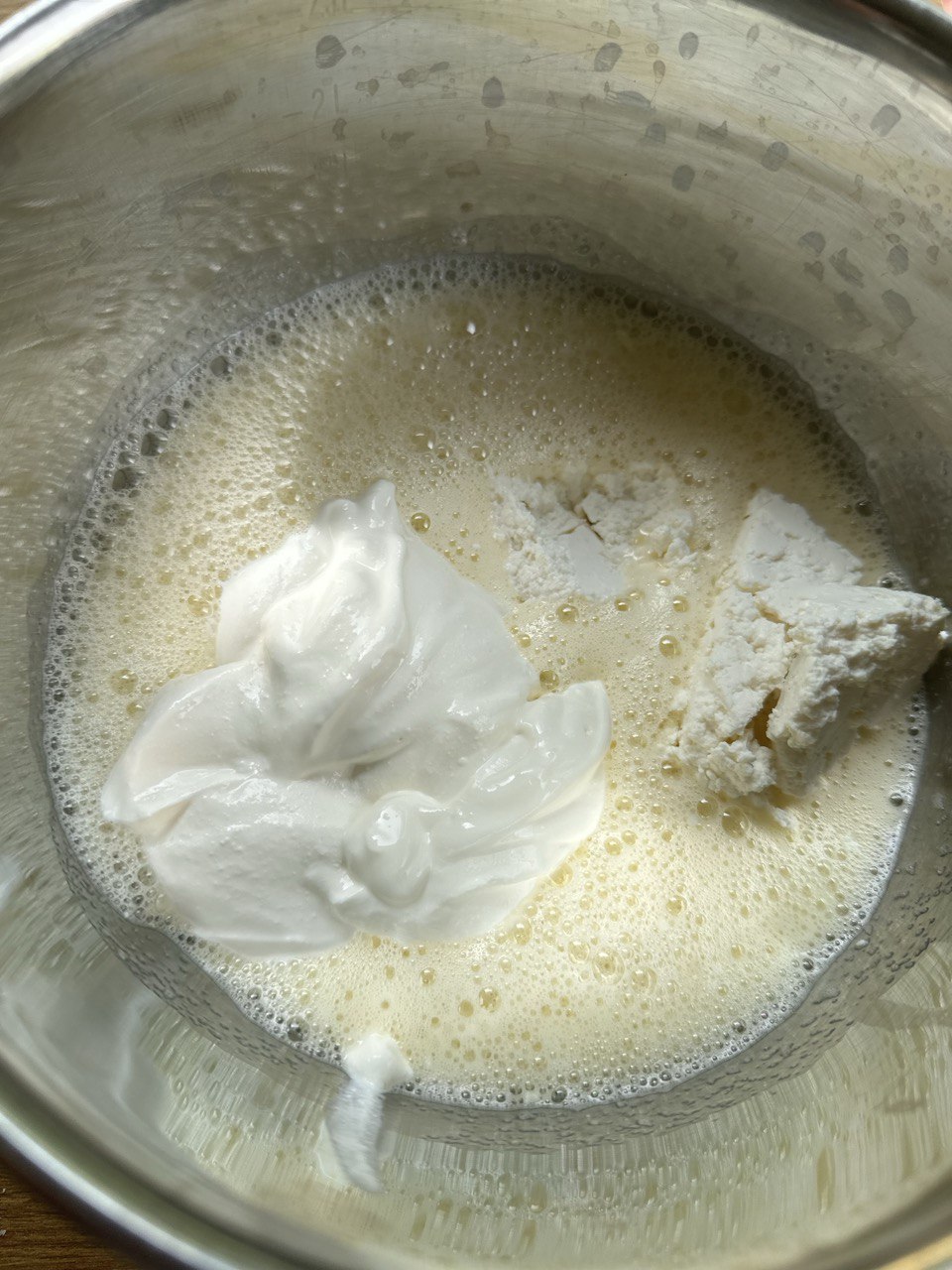Ингредиенты начинки смешиваем и тщательно взбиваем миксером.