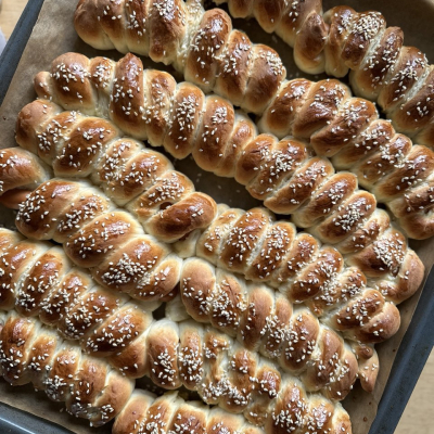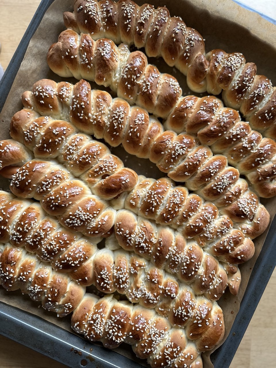 Выкладываем на расстоянии и даем подойти минут 20. Смазываем (желток + 1 ст/л молока) и сверху посыпаем кунжутом.