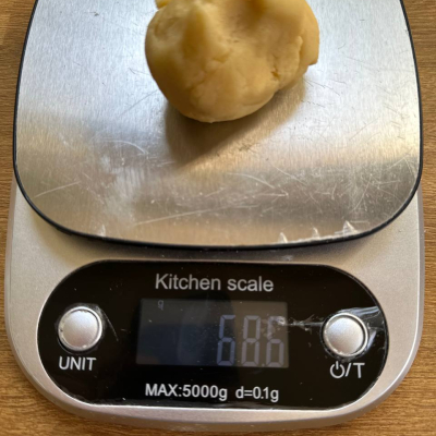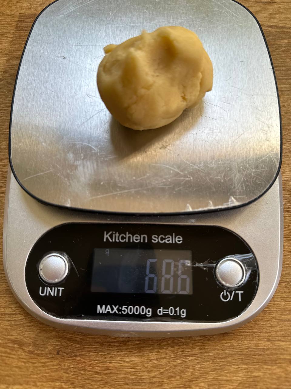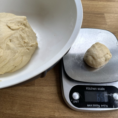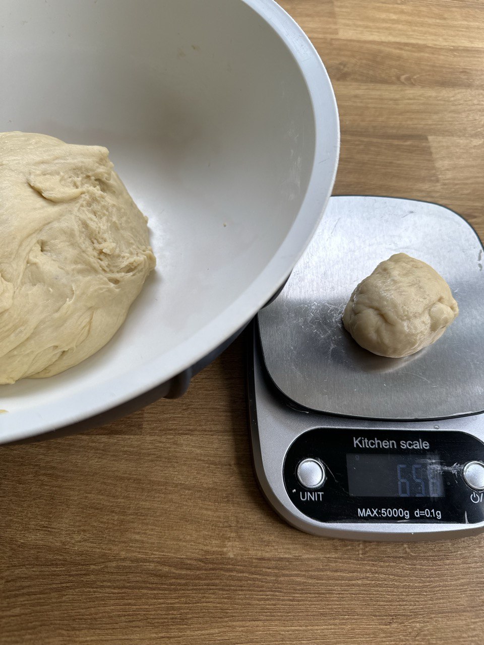 Разделить тесто на 12 частей ~ 68 г отмеряю на весах.