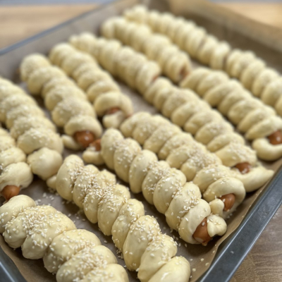 У сына был день рождения. Он пригласил своих одноклассников. Были немцы, испанец, болгарин и украинец (начало как в анекдоте :)) ). Сосиски ушли быстрее, чем торт. Воздушное тесто - не сухое, а мягкое. Вкусная булочка и сочная сосиска внутри.