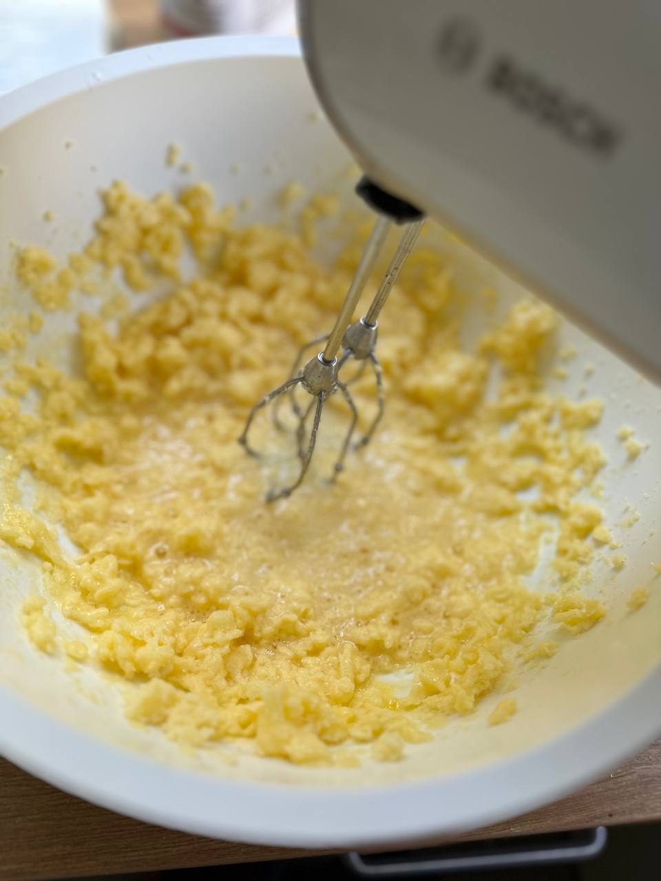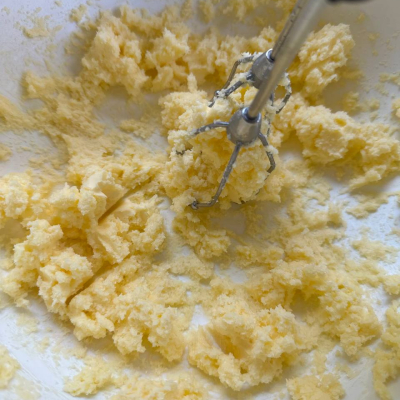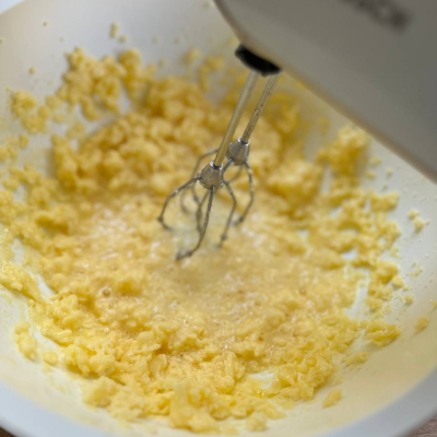 Взбить мягкое Сливочное масло с сахаром 3-5 минут.